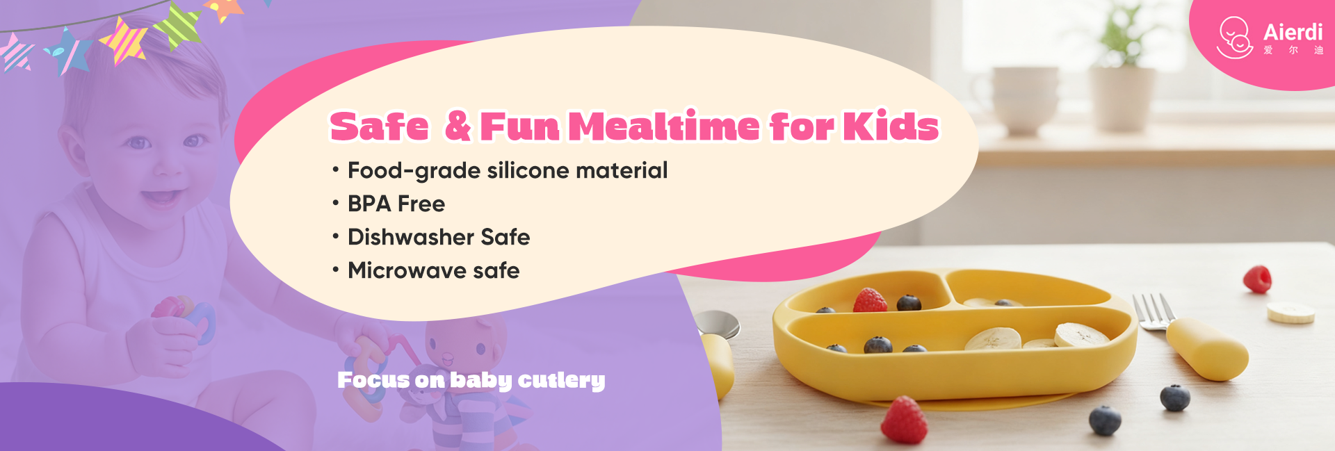 Juego de cubiertos para bebés con cuchara de alimentación de silicona y utensilios de tenedor de madera para un tiempo de comida conveniente