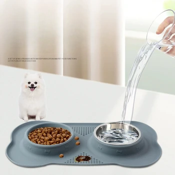 All in One Non Spill Hot Selling Customize Logo Double Portable Dog Supply Silicone Pe Ne Pet Bowl Mat Print Pet Bowls & Feeders